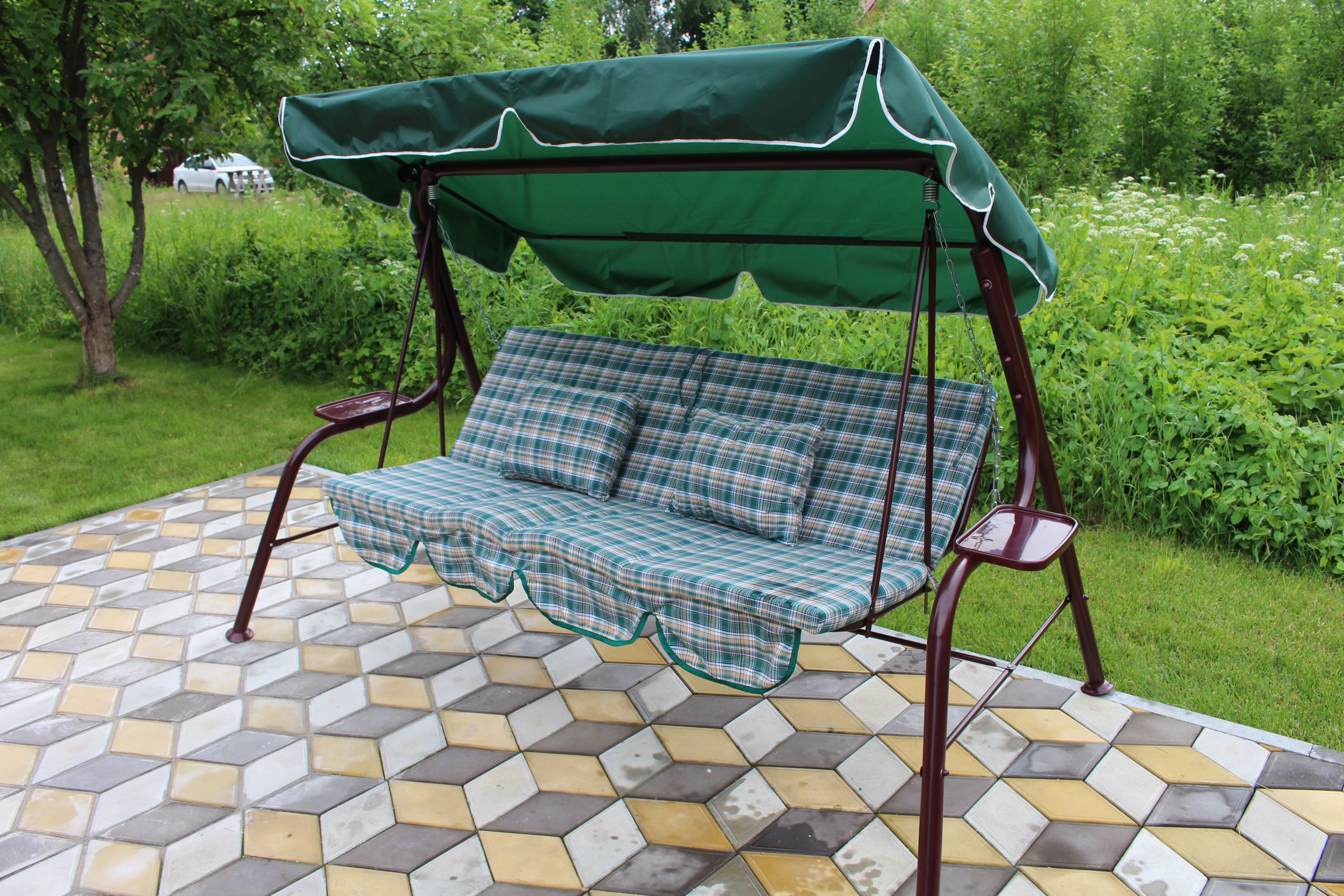 Краткое описание «Тент и матрас для садовых качелей, 182х100 и 170х55х55 еловый, зелёная шотландка»